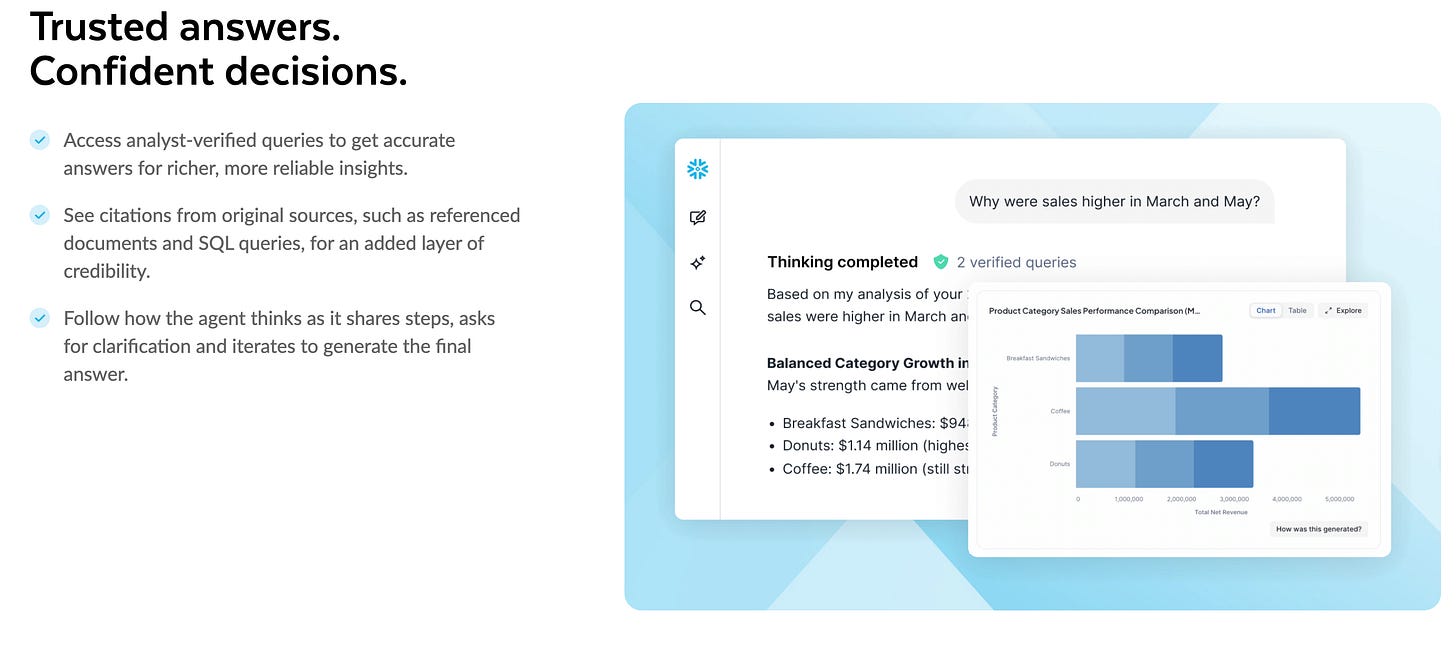 Snowflake Intelligence is the step function on top — a faster way to talk to, wrangle, and have AI analyze your data using the foundation you’ve already laid.